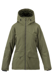 Ride out the storm in the Sarah Insulated Jacket, which gives you protection from the elements, including wind and waterproofing in Finish 2-layer stretchy exterior fabric, a powder skirt, and a helmet-compatible hood. A toasty layer of cushy micropuff insulation—made from post-consumer recycled materials—adds just the right amount of warmth. You’ll get street style mixed with mountain tech, thanks to a long, fashion-forward fit.