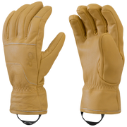 The outer material is 100% cow belly leather, while the lining is a wool blend with acrylic and polyester. This lining is wind resistant and wicking, making it perfect for keeping your hands warm and dry. The gloves also feature under-cuff construction, elasticized wrists, and a durable build that's burly enough for chopping wood, carving turns, and extended time outside.