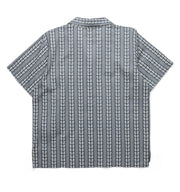 Relaxed fit, short sleeve button up shirt, camp collar, single chest pocket, 25% certified recycled polyester matte buttons, straight high low hem with side vents.