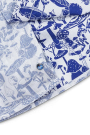 Reverse printing is just so summer with its washed down feel, sun-faded look, and laid back style. Single chest pocket and 25% certified recycled polyester dyed to match buttons.