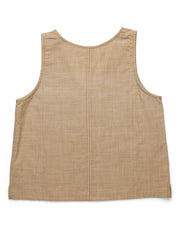 Semi-fitted, belt length tank top, v-neckline, chest pocket, front and back vertical seam styling, straight hem with side vents.